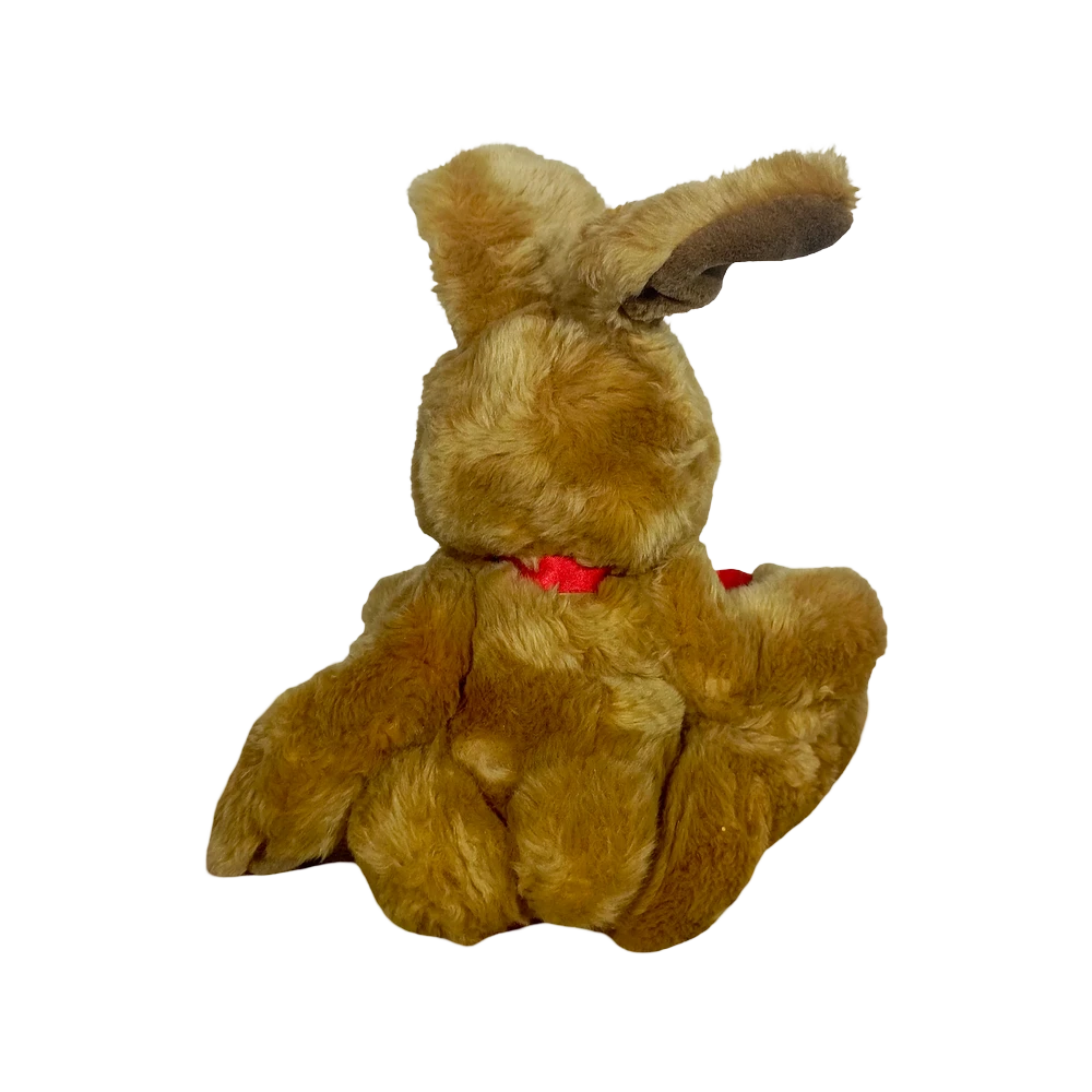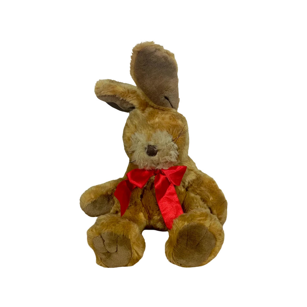 Brown rabbit plush toy tall, with large ears and red bow tie. Perfect for play and collecting. All Ages