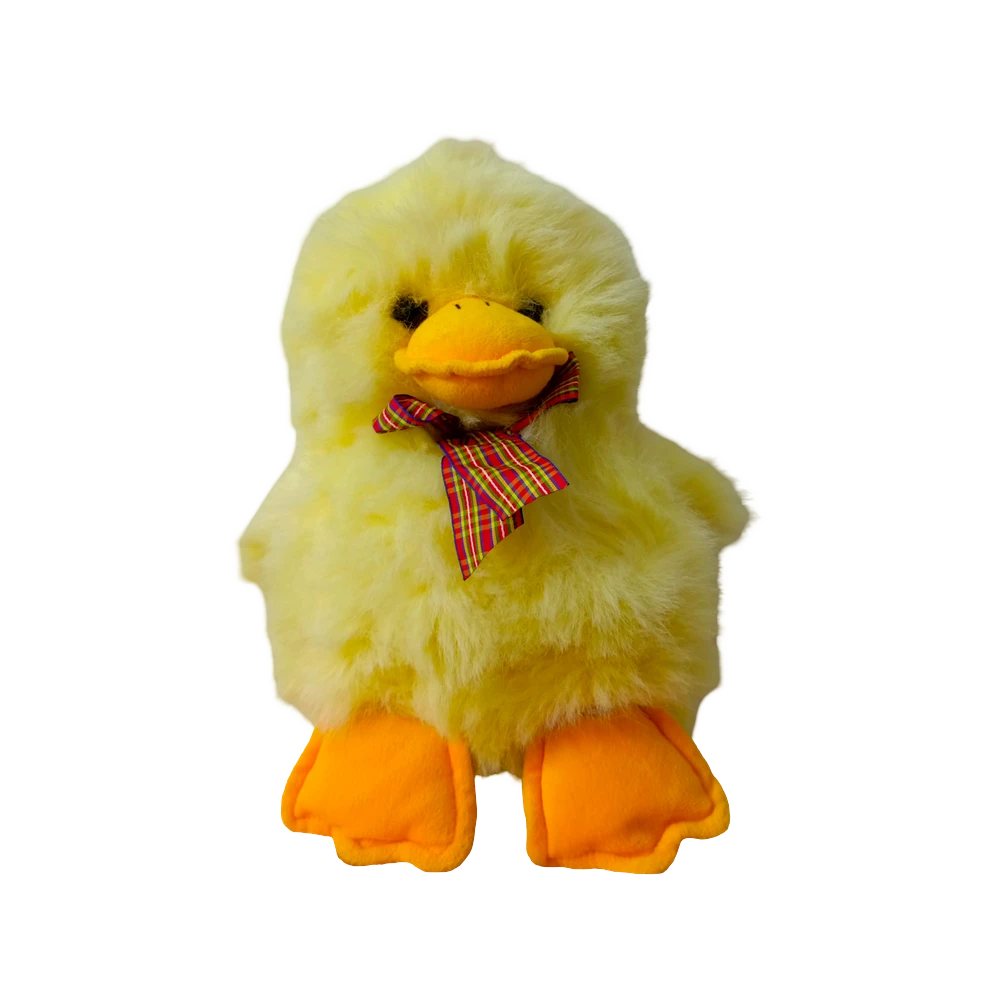 Quack with joy with the Duck Plush Toy in Yellow with Plaid Bow Tie! This adorable plush toy features a soft yellow body, an orange beak and feet, black eyes, and a red plaid bow tie with green accents, capturing the sweet and charming essence of a duck. Perfect for kids who love cuddling with a cute feathered friend or collectors seeking a delightful addition to their plush collection, this Duck Plush Toy brings warmth and cheer to playtime, bedtime, or as a decorative piece. Its huggable design and plush texture make it a delightful companion for duck lovers of all ages!