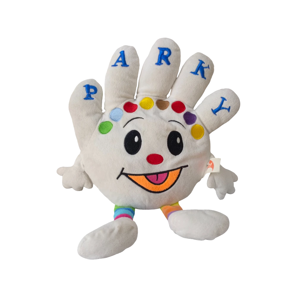 Play with fun with the Parky Hand Plush Toy in White with Colorful Letters! This adorable plush hand is perfect for kids and collectors who love unique themed toys.